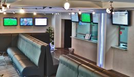 Прямые спортивные трансляции со всего мира, большой выбор событий для ставок, в том числе LIVE-ставок, уютный зал, бар, приветливый и вежливый персонал.